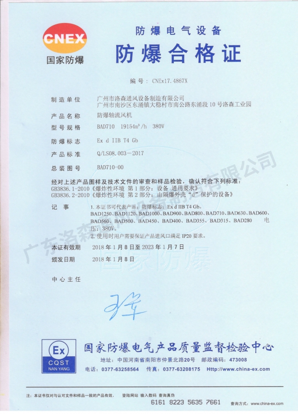 主頁 > 榮譽資質(zhì) > 產(chǎn)品認(rèn)證證書 > 防爆合格證-防爆軸流風(fēng)機BAD710