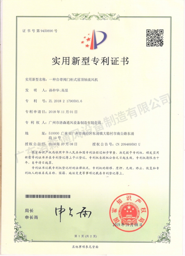 主頁 > 榮譽(yù)資質(zhì) > 專利證書 > 一種自帶閥門柜式屋頂軸流風(fēng)機(jī)