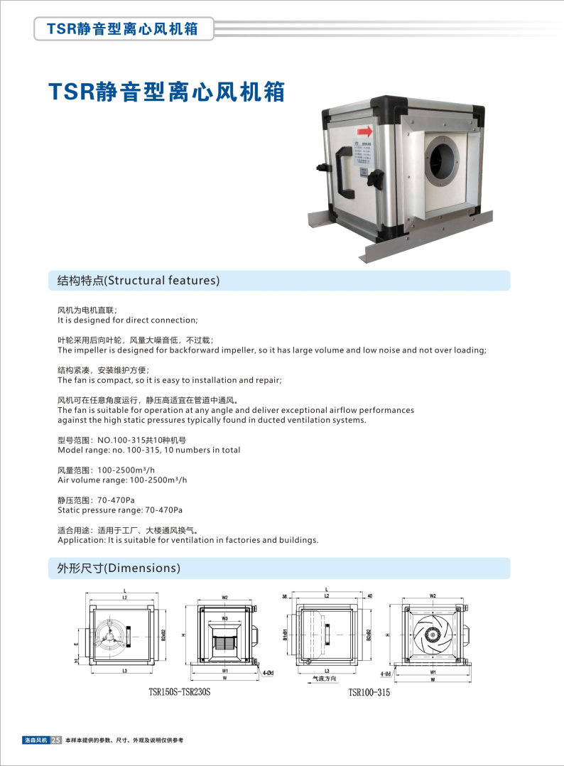 主頁 > 產(chǎn)品展示 > 小風(fēng)量離心風(fēng)機(jī) > TSR靜音離心風(fēng)機(jī)箱