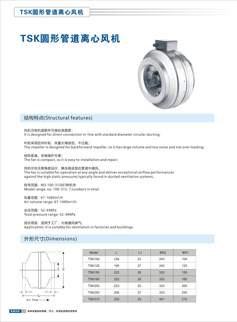 主頁 > 產(chǎn)品展示 > 小風(fēng)量離心風(fēng)機 > TSK圓形管道離心風(fēng)機