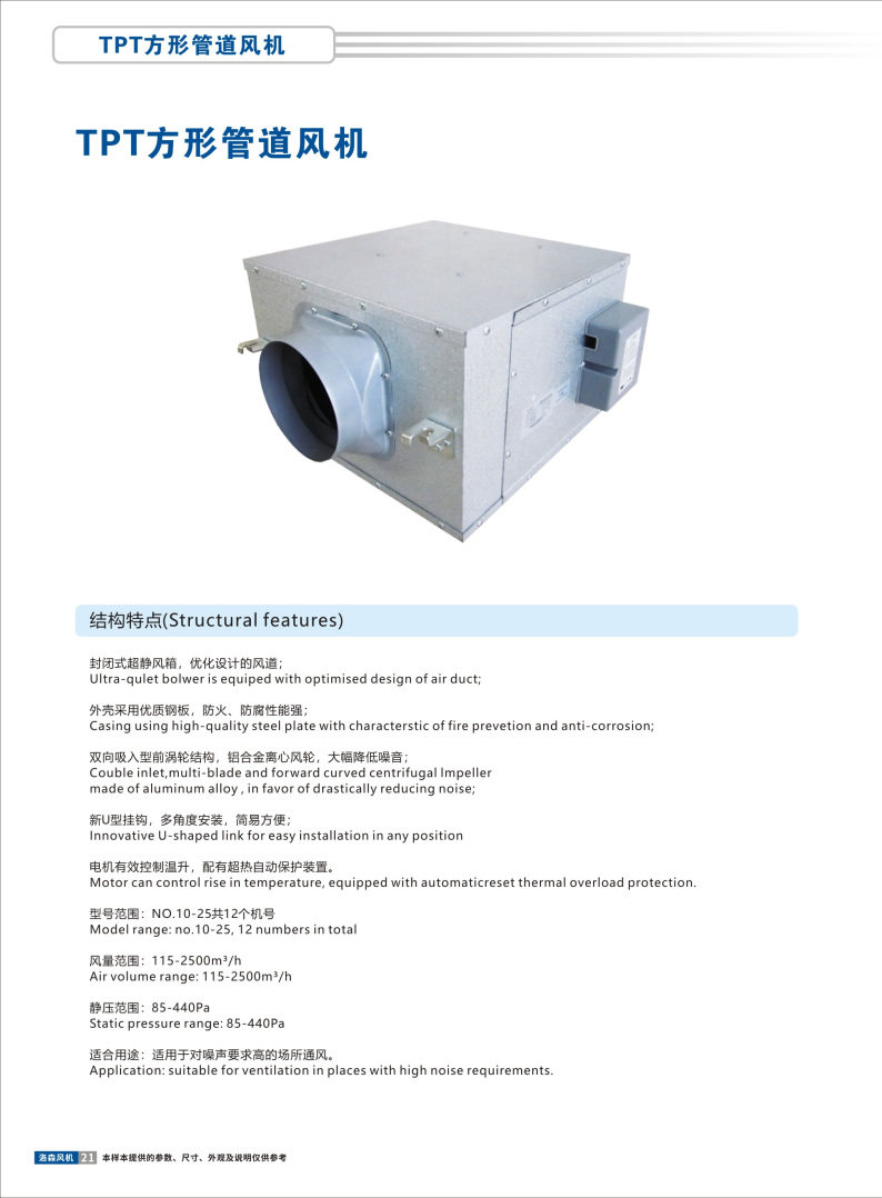 主頁 > 產(chǎn)品展示 > 小風(fēng)量離心風(fēng)機(jī) > TPT方形管道風(fēng)機(jī)