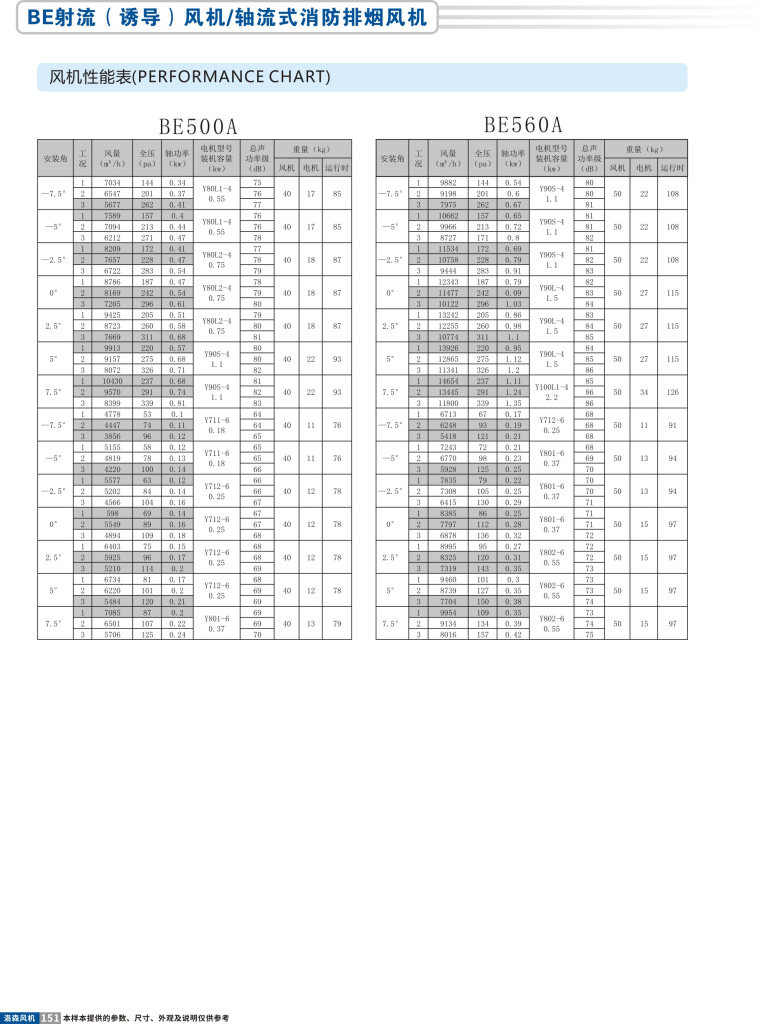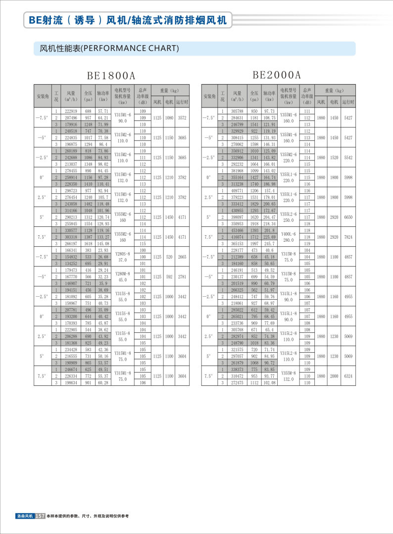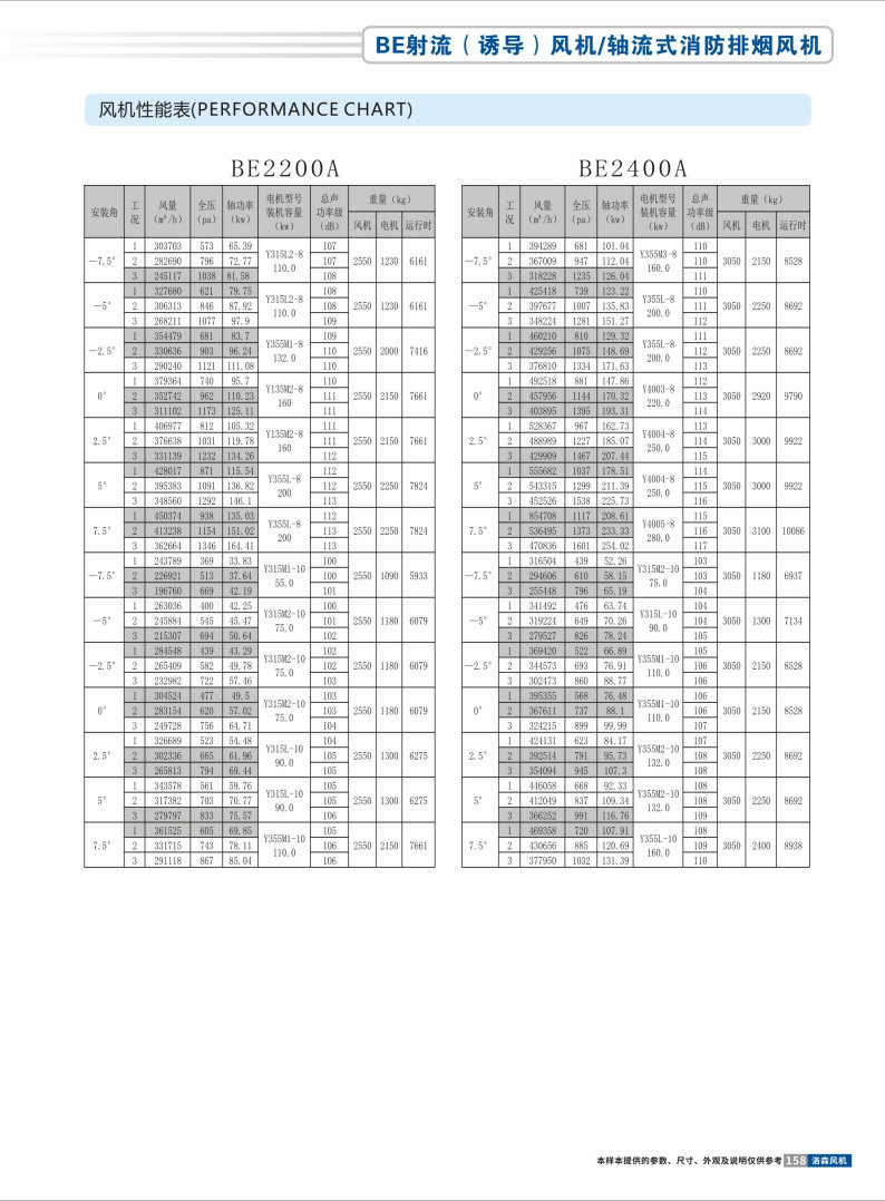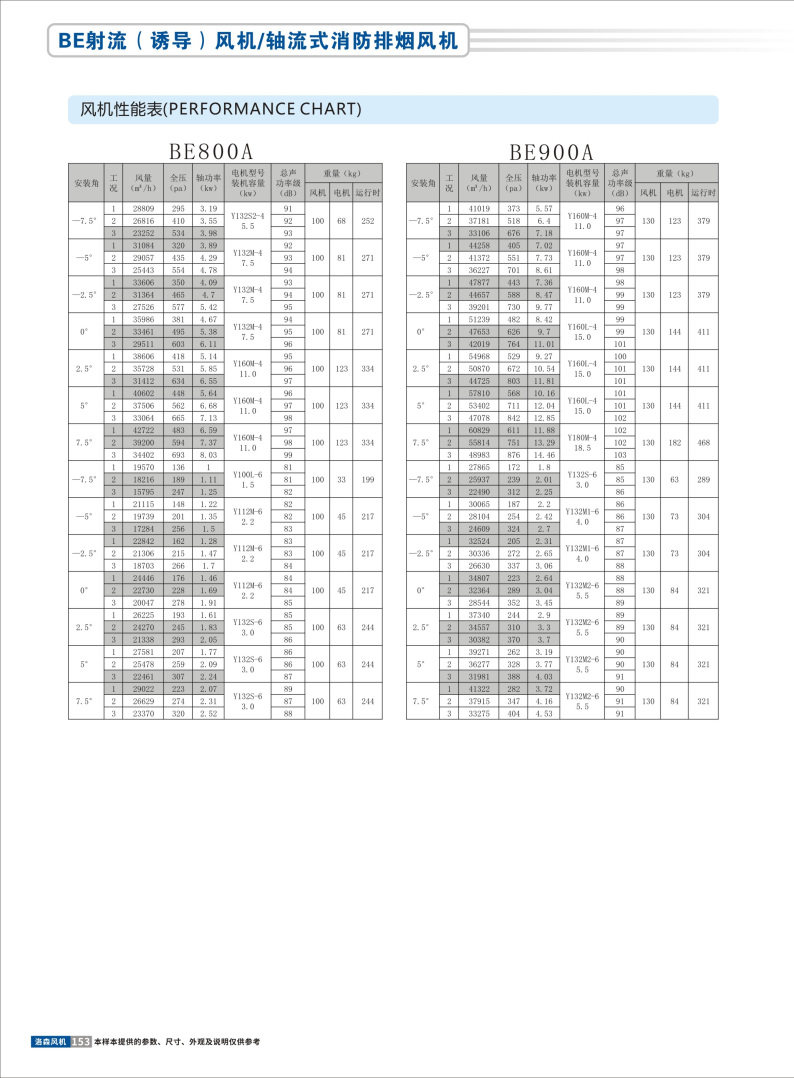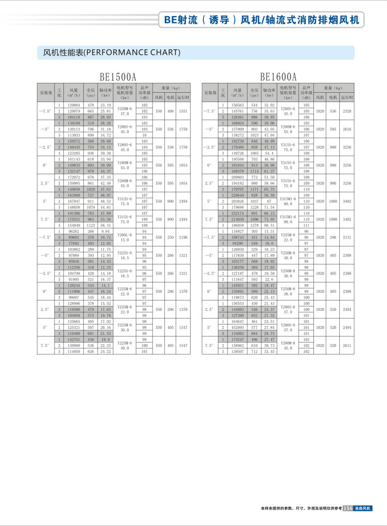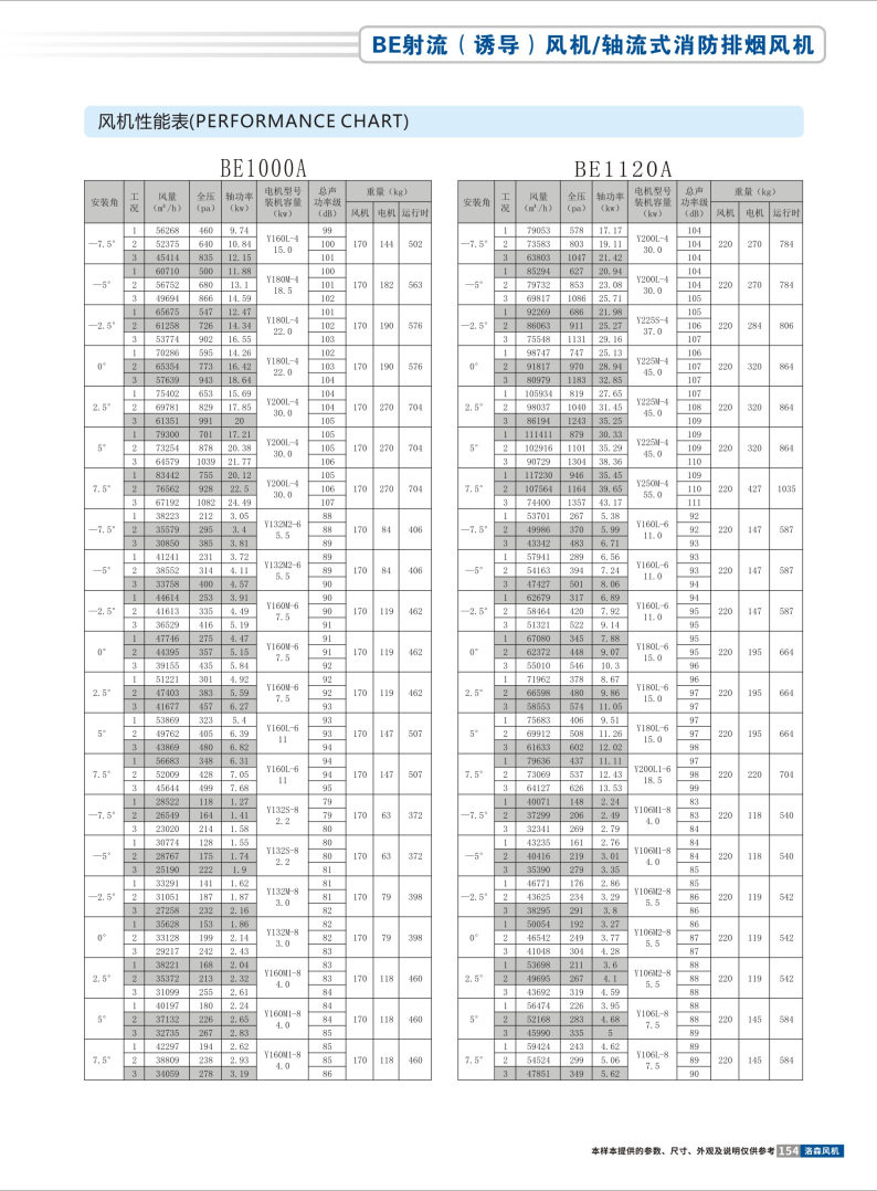 BE射流(誘導(dǎo))風(fēng)機(jī)/軸流式消防排煙風(fēng)機(jī)工作條件可在-25℃~50℃環(huán)境下連續(xù)工作運(yùn)行,隧道內(nèi)發(fā)生火災(zāi)時(shí),可允許在250℃下短時(shí)間運(yùn)行(不超過1h)。