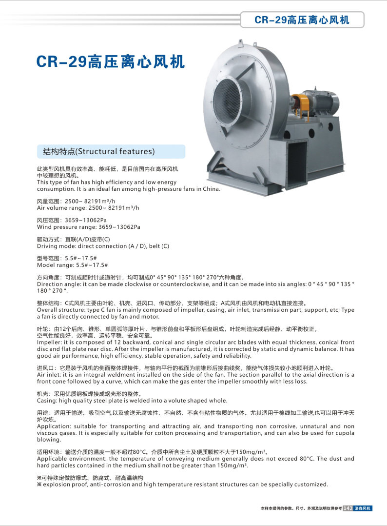 主頁 > 產(chǎn)品展示 > 高壓離心風機 > CR-29高壓離心風機