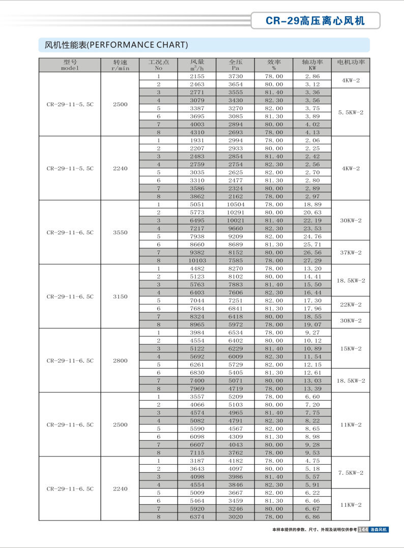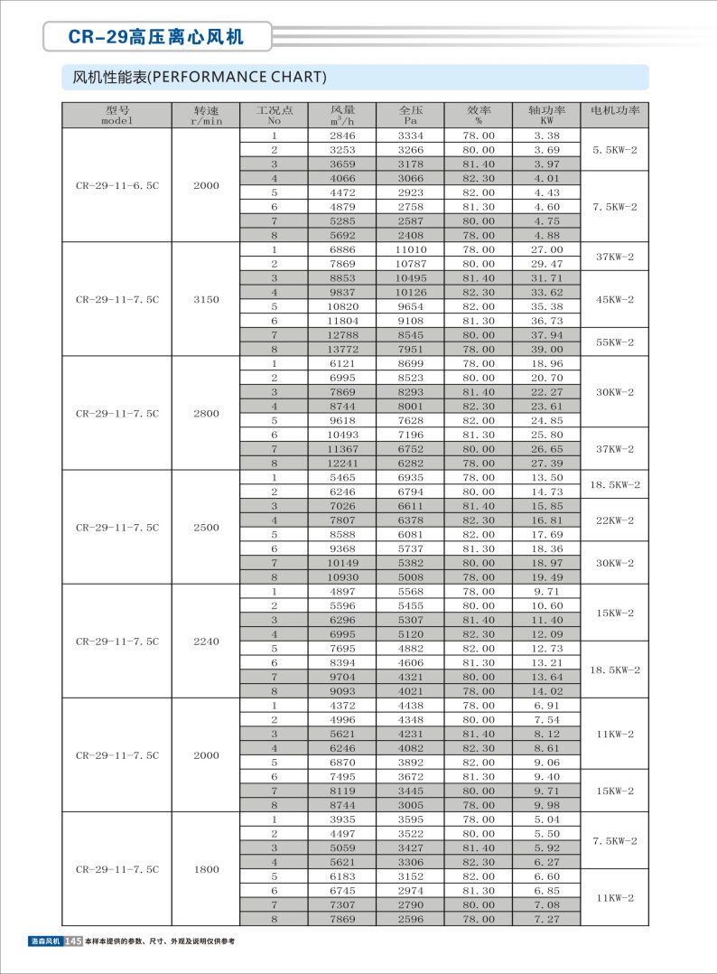此類型風機具有效率高、能耗低,是目前國內(nèi)在高壓風機中較理想的風機。