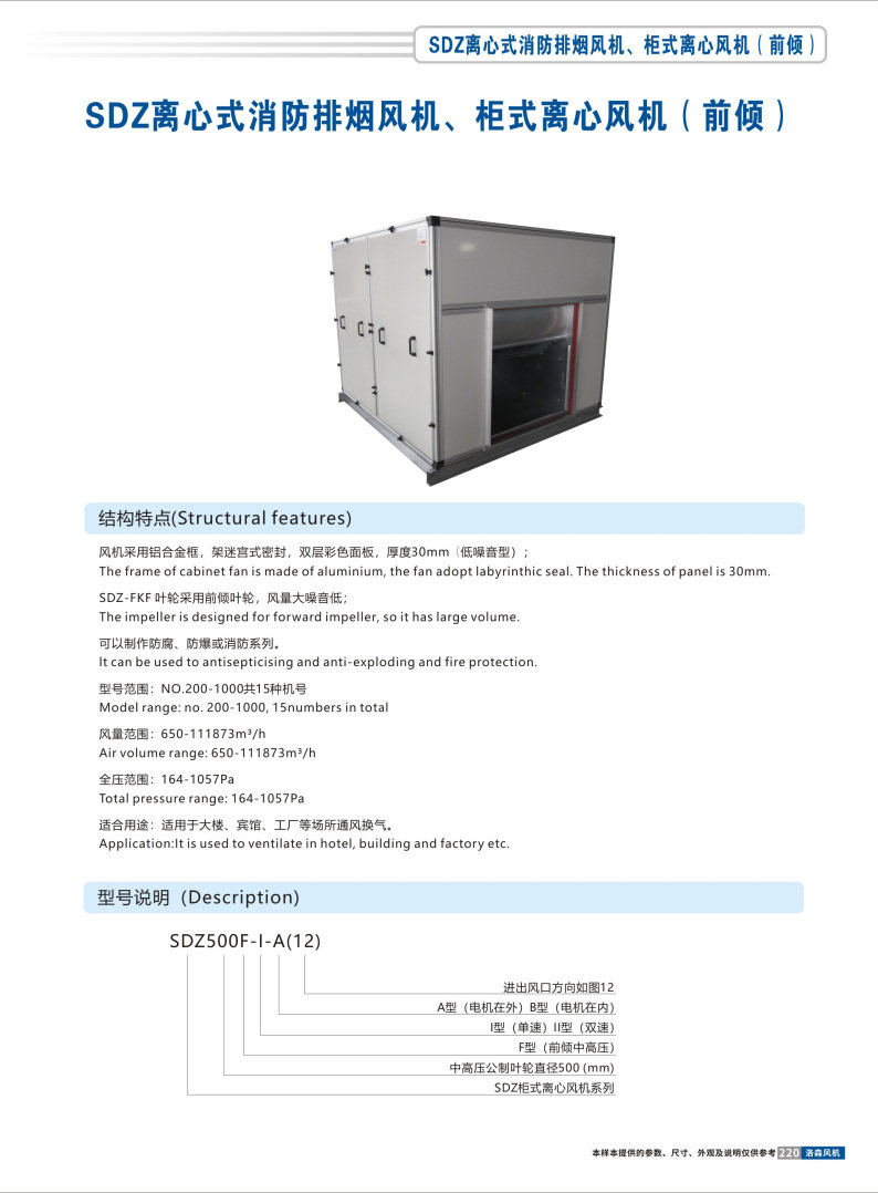 SDZ離心式消防排煙風機/柜式離心風機(前傾)