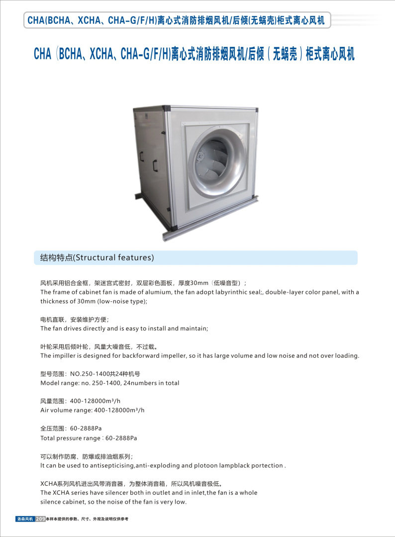CHA(BCHA、XCHA、CHA-G/F/H)離心式消防排煙風(fēng)機/后傾(無蝸殼)柜式離心風(fēng)機