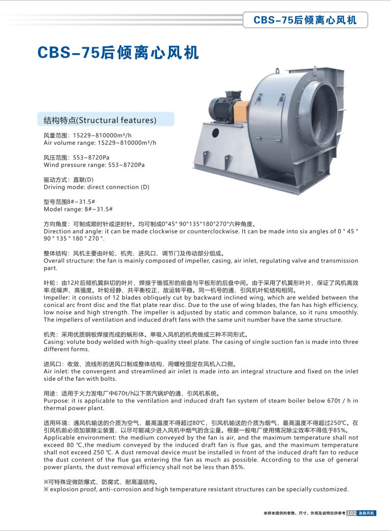 主頁 > 產(chǎn)品展示 > 后傾離心風(fēng)機 > CBS-75后傾離心風(fēng)機